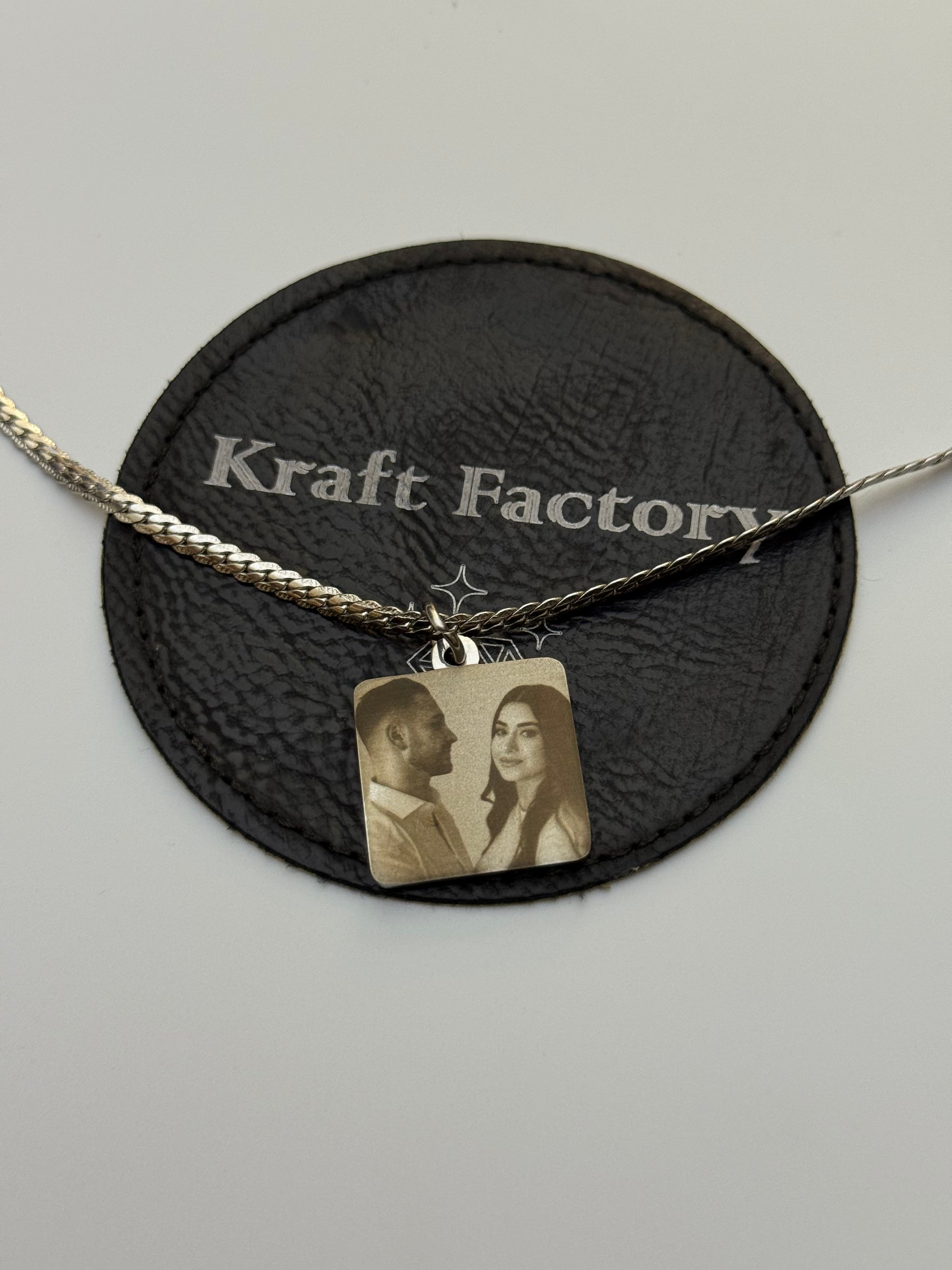 Carry your most cherished memories with you wherever you go with our Custom Photo Necklace! The square pendant is perfect for displaying your special photo or design, while the other side can be personalized with a sentimental message. Made with high-quality silver colored stainless steel, this necklace is both stylish and meaningful.