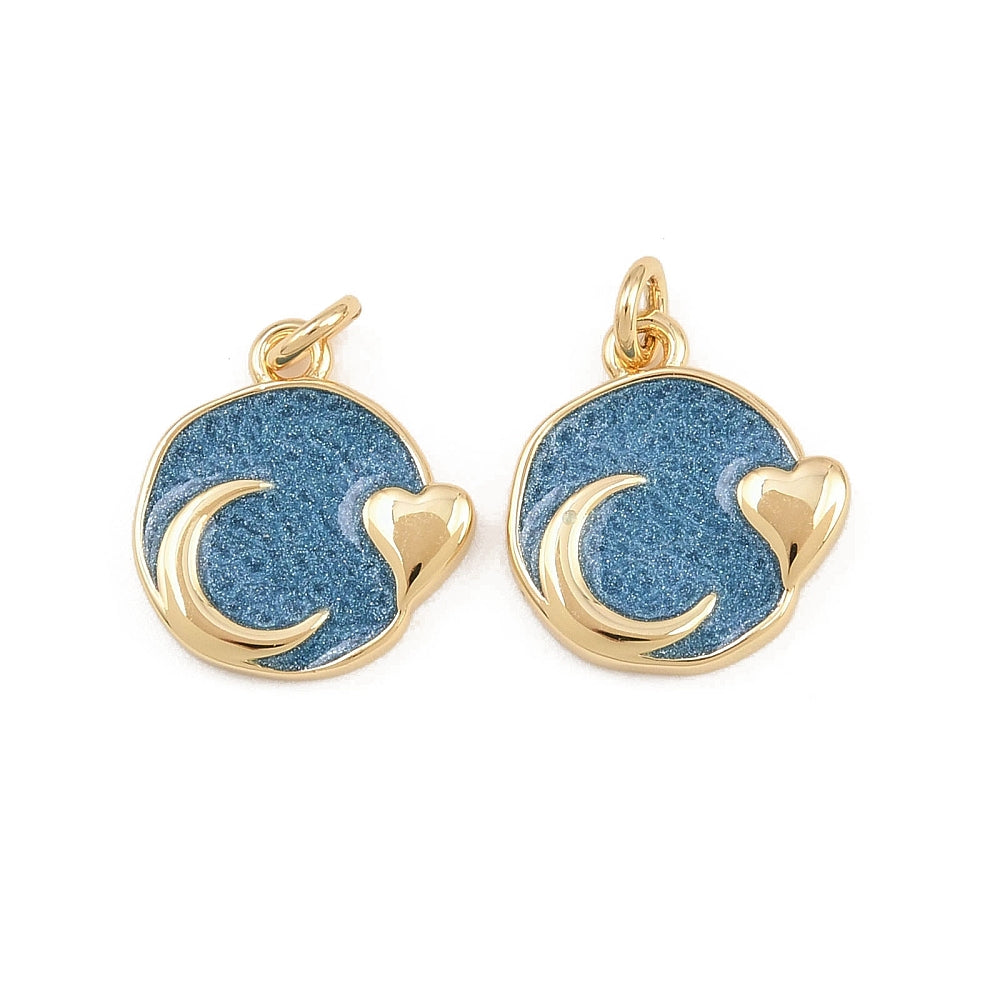 This elegant round enamel charm features a shimmering sky-blue background accented with a delicate gold crescent moon and heart, creating a calm and romantic design you can wear every day.